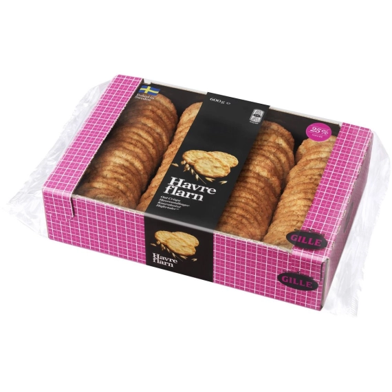 Verdens mest solgte Havreflarn - Gullmedaljevinner! Tynn og sprø småkake bakt med havregryn og er uten melk. - Allergener: gluten, melk - Forbrukerpakning i lekker rosafarget eske med frontvindu hvor du ser småkakene.