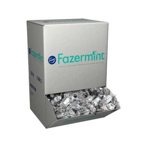 Fazermint ble opprettet i 1963 og er en av verdens mest kjente individuelt innpakkede Fazer-sjokolade. Kombinasjonen av fersk mynte og luksuriøs mørk sjokolade vil sjarmere sjokoladeelskere. - Vekt: 3kg