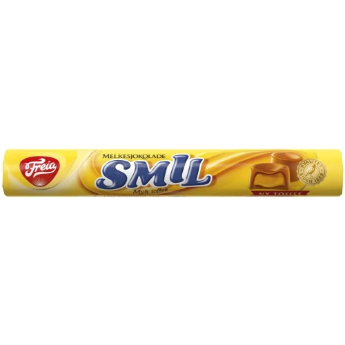 Freia Smil er en deilig rull med biter av Freia Melkesjokolade og kjerne av myk toffee. Som skapt for å deles.