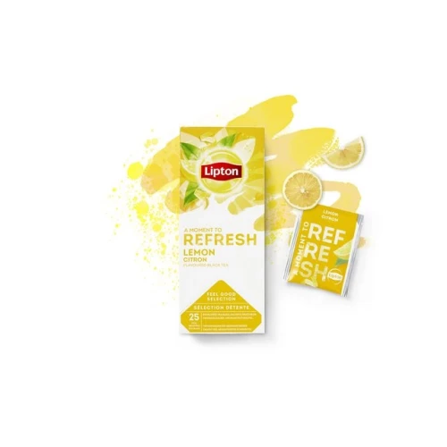Start dagen med denne deilige blandingen av nypressede svarte teblader med sitron. Våkn opp til den forfriskende smaken av Lipton Lemon Black-te om morgenen. Gled sansene dine med sitrusduft av sitron, sammen med en nøye utvalgt blanding av svart te, som gir en forfriskende smak i hver eneste slurk. - Enkel å tilberede: Legg én pose i kokt vann i 2?3 minutter, og ta den ut - Koffeinholdig drikke - 100 % bærekraftige teblader - Sertifisering: Rainforest Alliance - Smak: Sitron - Én boks inneholder 25 innpakkede teposer