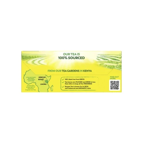 Teposer med klassisk sort te fra Kenya. Rund og fyldig smak. Tilberedning: 1 tepose brygges i 200ml nykokt vann i 2-3 minutter.