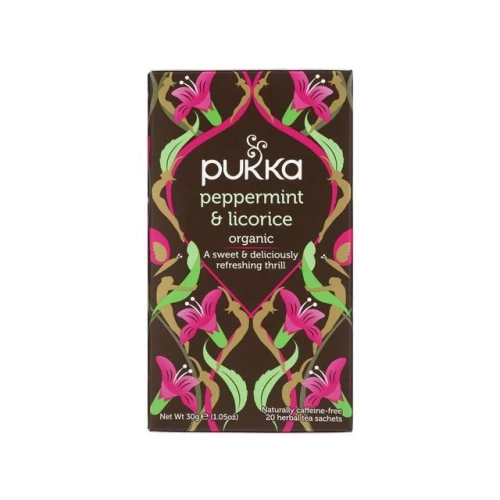 Te med den naturlige søte smaken av lakrisrot og den rene friskheten fra ferske peppermynteblader, satt sammen til en perfekt blanding. Unn deg selv et søtt øyeblikk av lykke! - Økologisk - Inneholder 20 teposer. - Koffeinfri: ja. - Trekketid: Inntil 15 minutter. - Nettovekt: 30g.