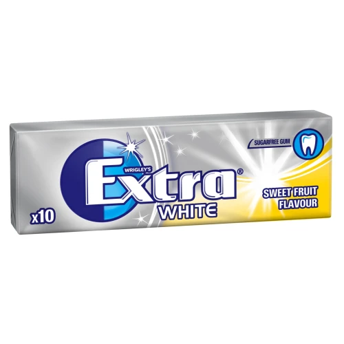 Extra White Sweet Fruit er en sukkerfri tyggegummi med smak av frukt som motvirker misfarging på tennene dine.